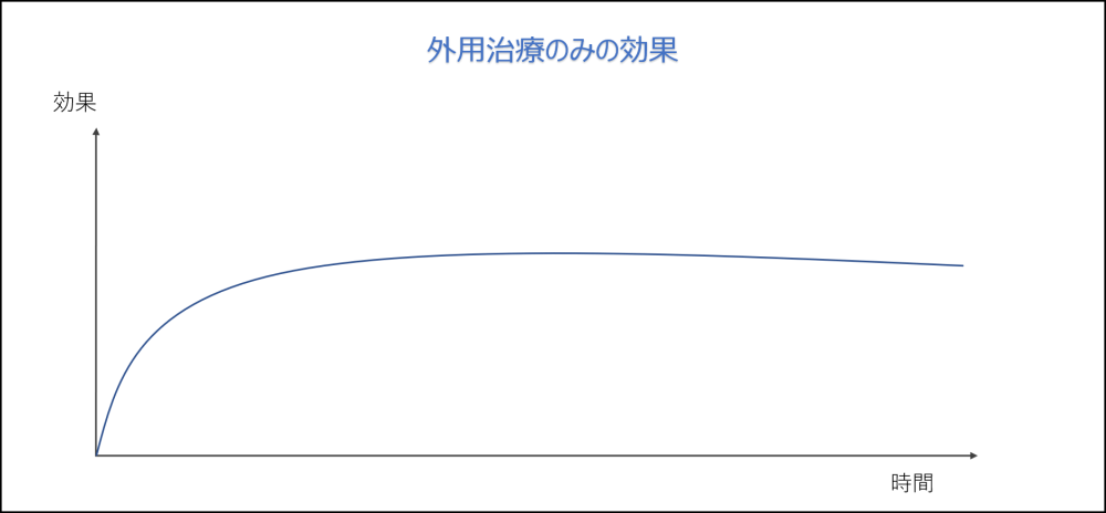 下の図は外用治療のみを行った場合の効果と時間を表す図です。