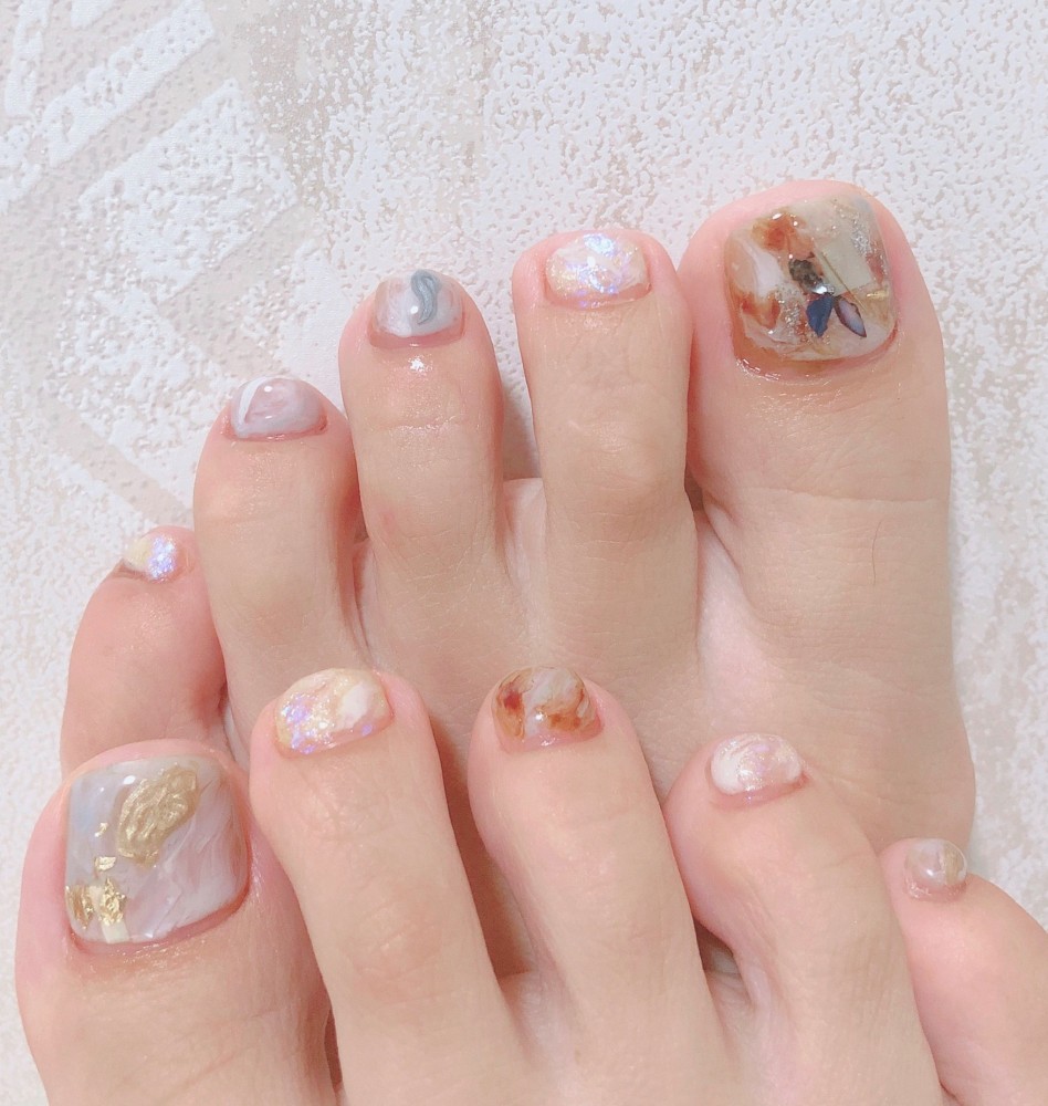 家事や子供の世話をしているとハンドはすぐに取れてしまいがちなので、フットネイルを楽しんでおります。