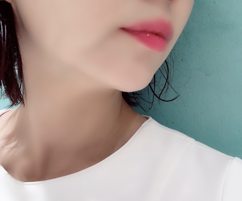 うす~く指でポンポンポンと塗ると、自然な発色で唇だけ浮いて見えたりしないですよ~♪