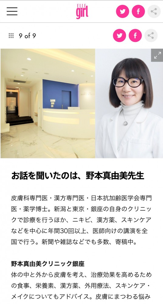 雑誌「ELLE girl(エルガール)」に人気の漢方皮膚科・美容皮膚科の医師として