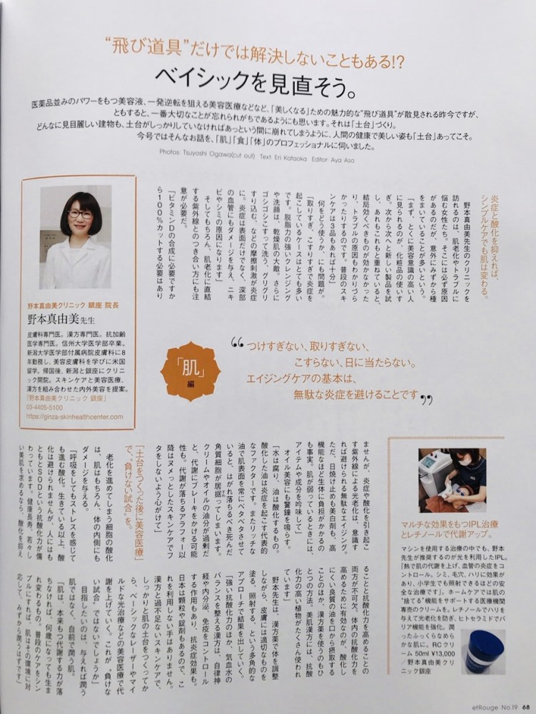 野本医師が日系BP社発行の『etRouge NO.19』という雑誌の中でこのようにお話されています。