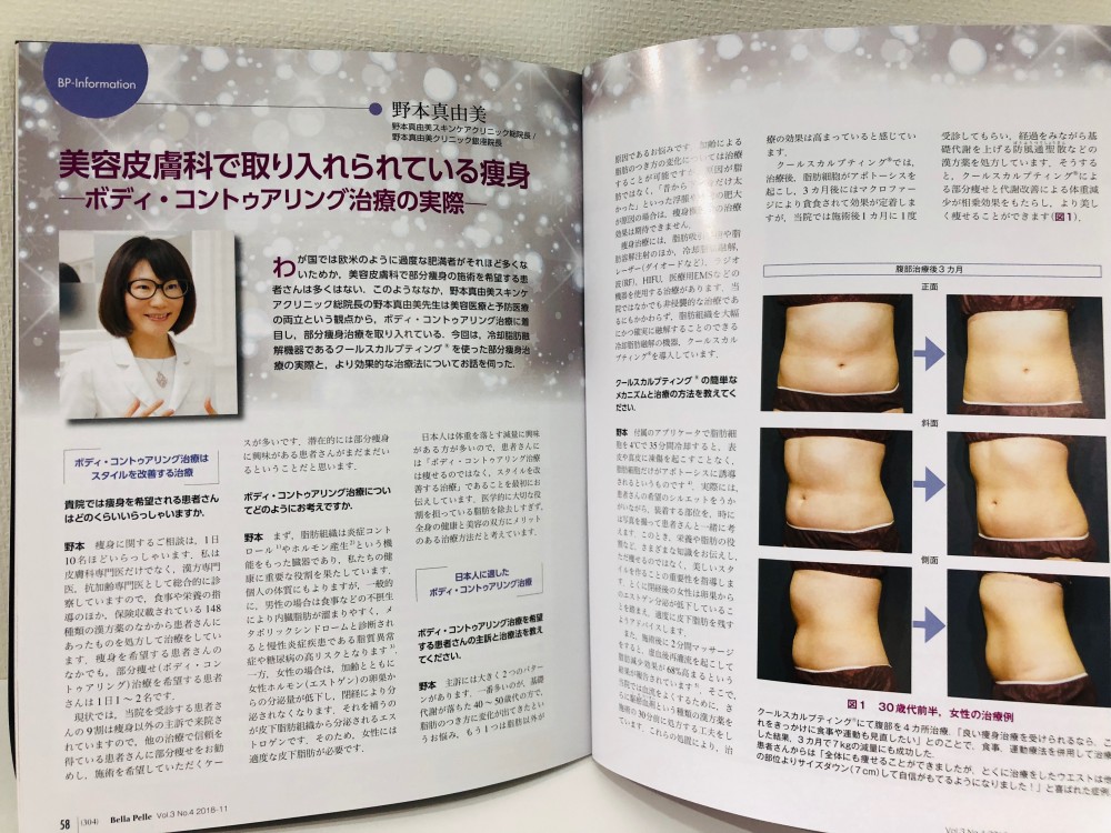 国内唯一の医学雑誌『BellaPelle(ベラペレ)』に野本医師が掲載されました。