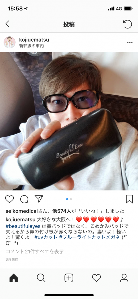 ご自身のインスタグラムでビューティフルアイズのサングラスを