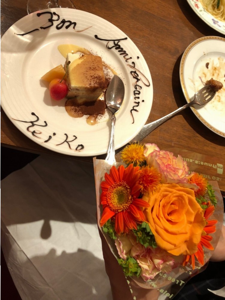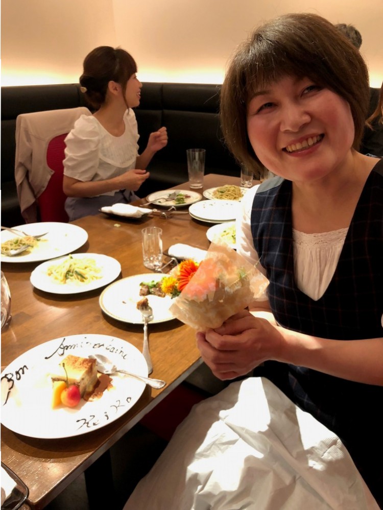 お誕生日でサプライズケーキと花束がっ!!素敵な笑顔♪