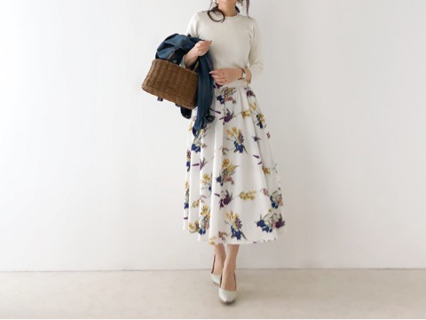 揺れる柄物のスカートは女性らしさを演出するアイテムなので、