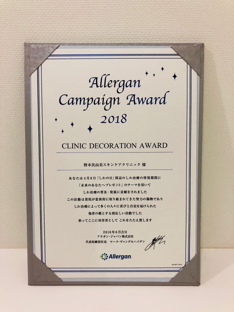 ”4/8は しわの日” で有名なアラガンジャパン株式会社様のしわ治療の啓発期間に