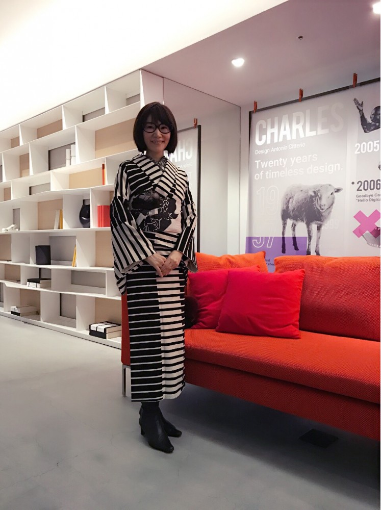 院長の着物にブーツの組み合わせがとってもおしゃれ♫