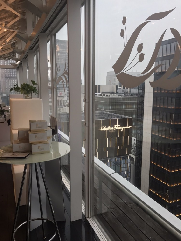 会場は銀座。実は私と牧野さんは新潟から着物で新幹線に乗って行きました。