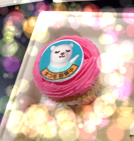 休憩時間に頂いたポップな色使いのカップケーキ!(←口にしても安全な色素使用らしいです!ロンドン発のお店だとか・・・)