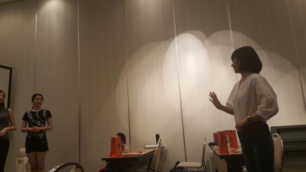 これはカラーコーディネートの授業で、ドレスの色選びで見せたい自分の姿に変えることができるというお話をされていました。