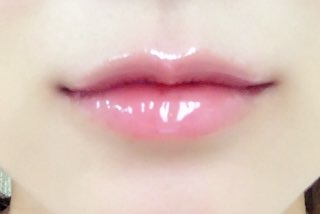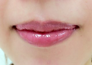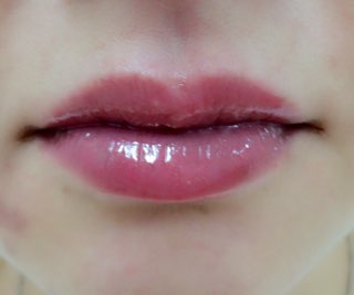 クリアカラーよりも329 Lovers Coral を塗った時のほうが、色味がはっきりする分、唇のボリュームも
