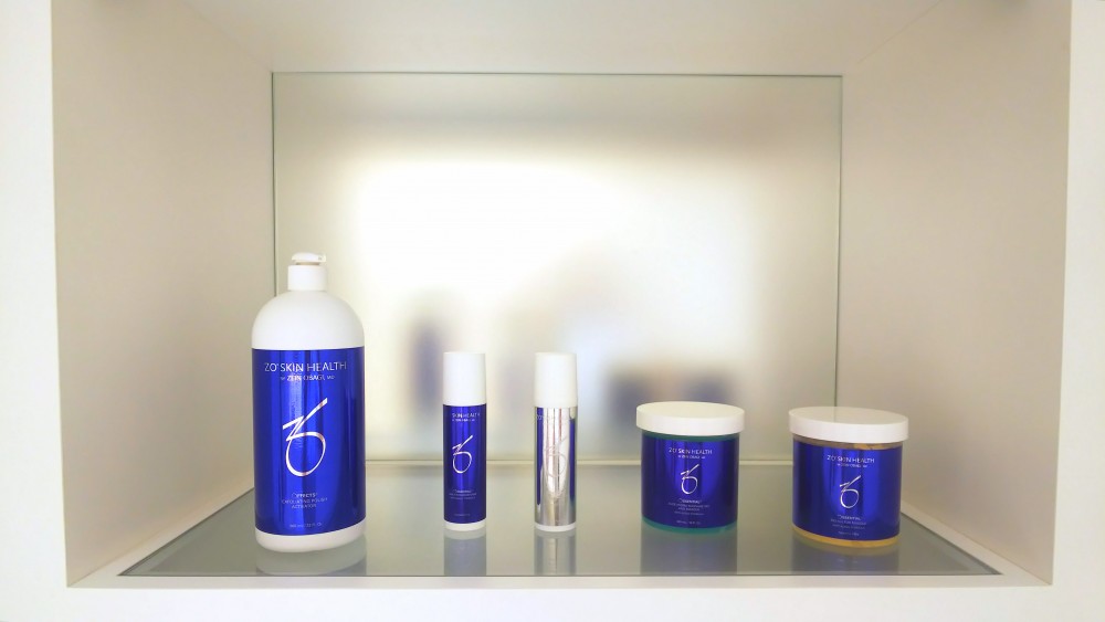 クリニックの待合室にある、ZO SKIN HEALTHのディスプレイ。