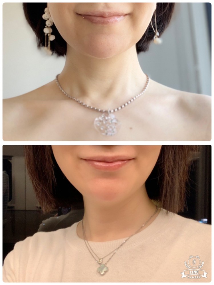 エリイさんはピアスの穴が空いていないのでイヤリング2種類の中から問答無用でブルベースのカラーのイヤリングを(笑)