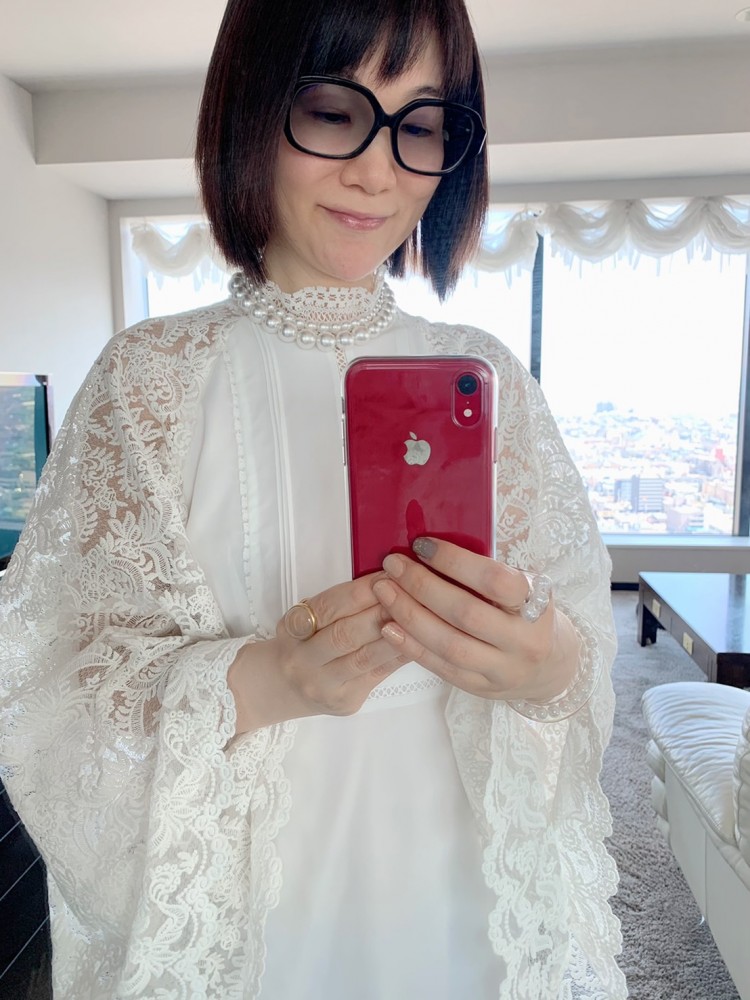 こちらのワンピースは銀座の受付である山本さんが作ったドレスだそうです♡
