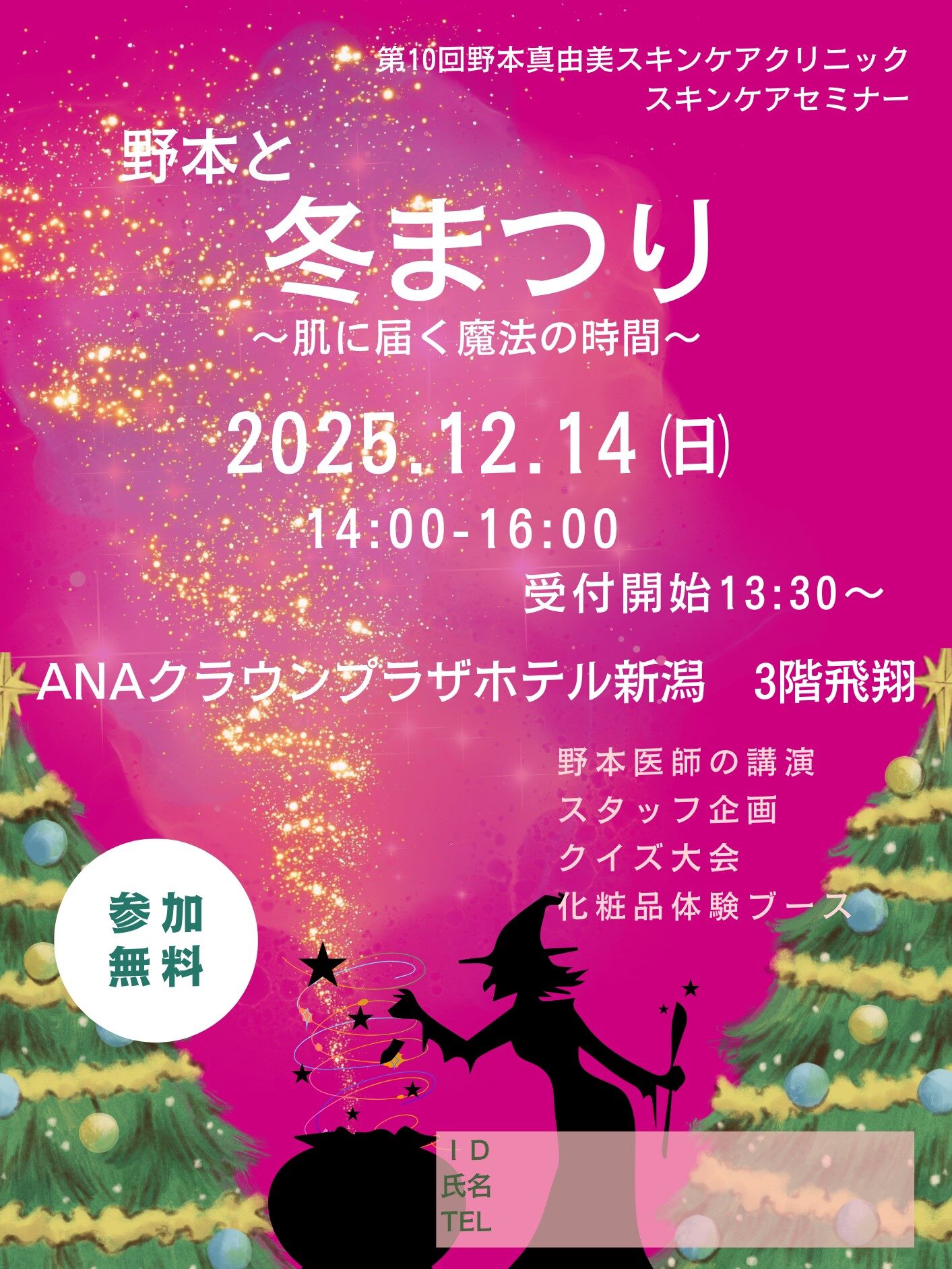 当日は、野本真由美スキンケアクリニックのスタッフ一同、心より皆様のご来場をお待ちいたしております。