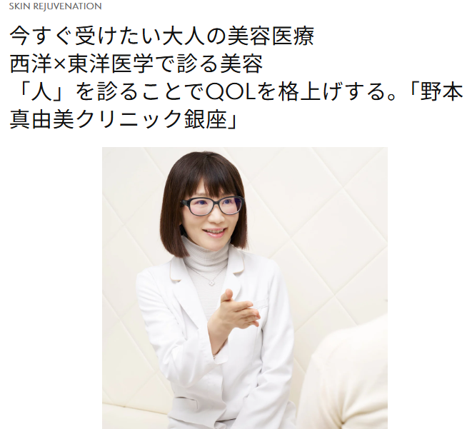 編集部が厳選した美容医療のエキスパートとして野本医師が紹介されております。